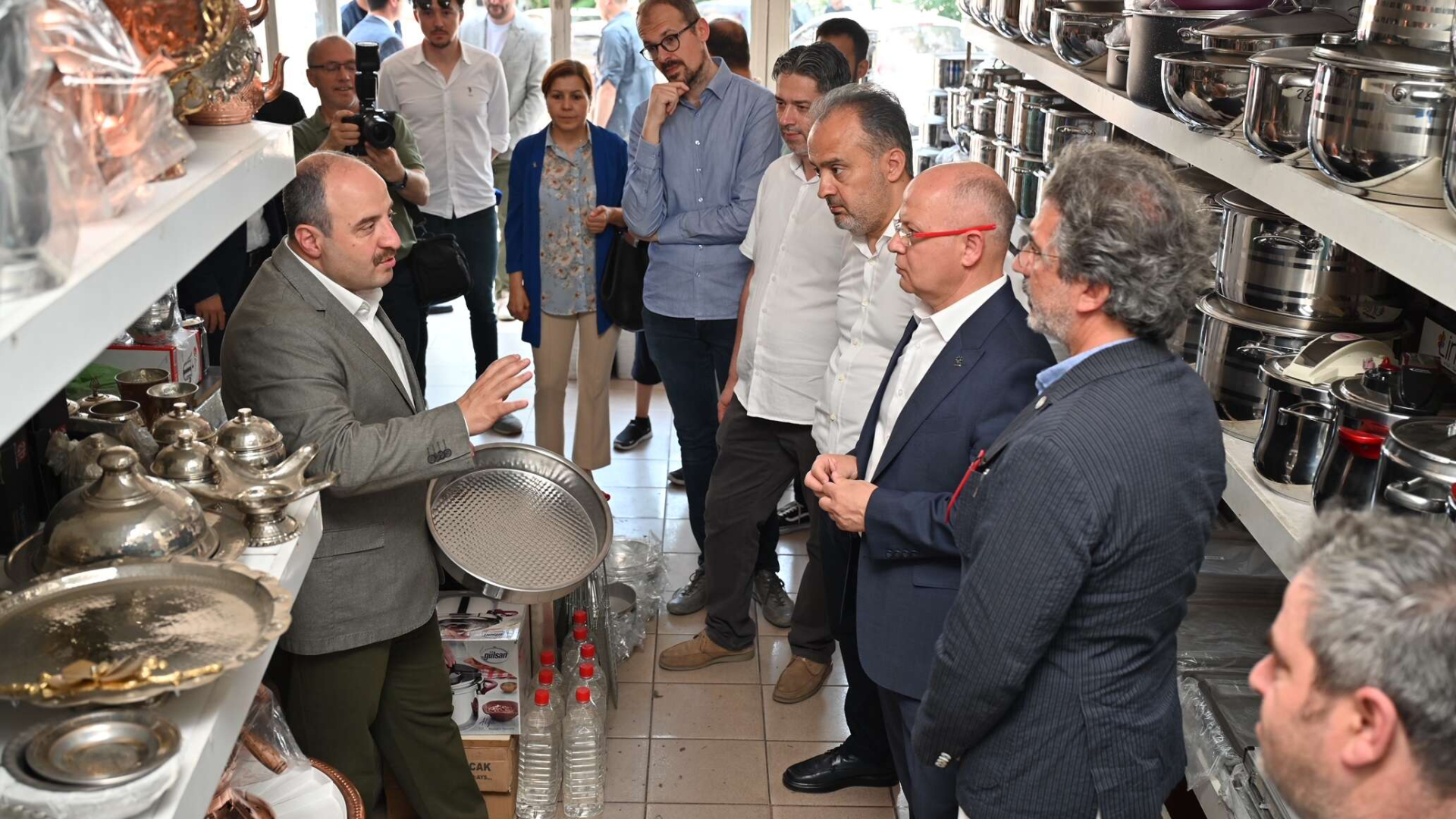 Bursa Büyükşehir Belediye Başkanı Alinur Aktaş, geleneksel hale getirdiği bayram öncesi esnaf ziyaretlerine bu kez bıçakçılardan başladı. Başkan Aktaş, beraberindeki Bursa Milletvekili Mustafa Varank ve AK Parti İl Başkanı Davut Gürkan ile birlikte Kurban Bayramı öncesinde yoğun hareketliliğin yaşandığı Bıçakçılar Çarşısı’nı ziyaret etti. Bıçakçı esnafıyla sohbet eden Başkan Aktaş, Kurban Bayramı’nın hayırlı ve bol kazançlar getirmesi dileğinde bulundu.