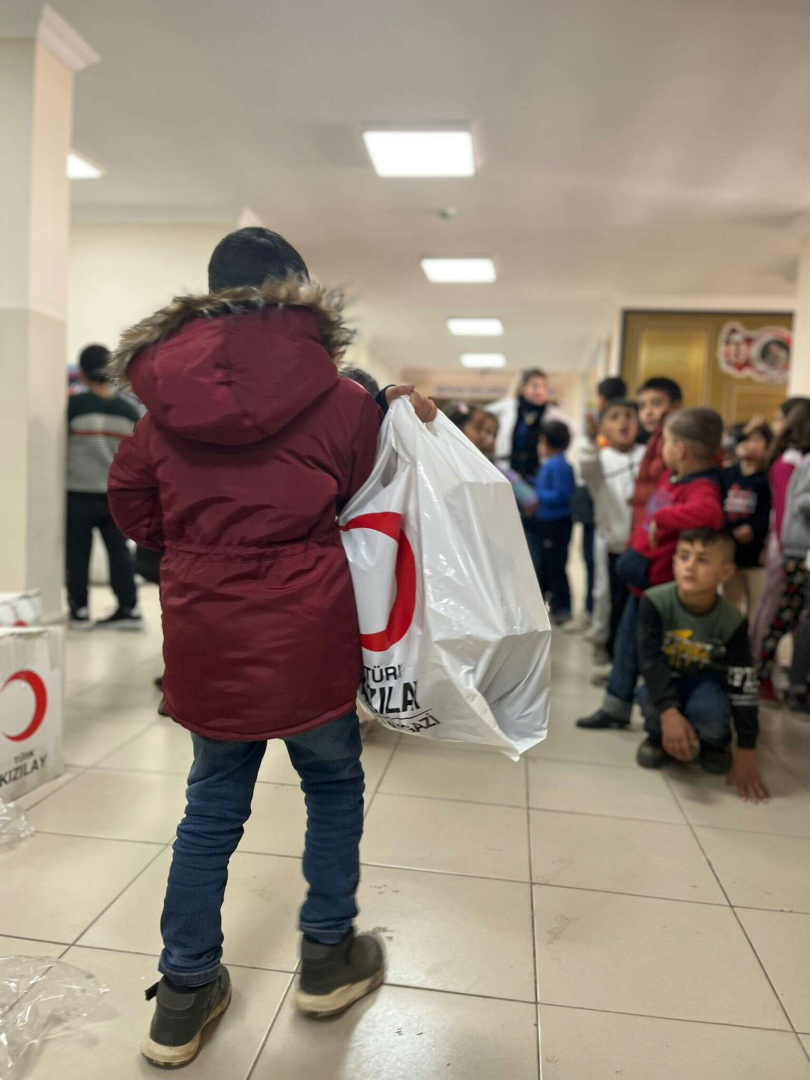 Bursalı iş insanları destekleriyle hazırlanan bot, mont ve diğer kışlık giysiler, Adıyaman’daki Şehit Mesut Çelik İlkokulu’nda eğitim gören 550 öğrenciye dağıtıldı.