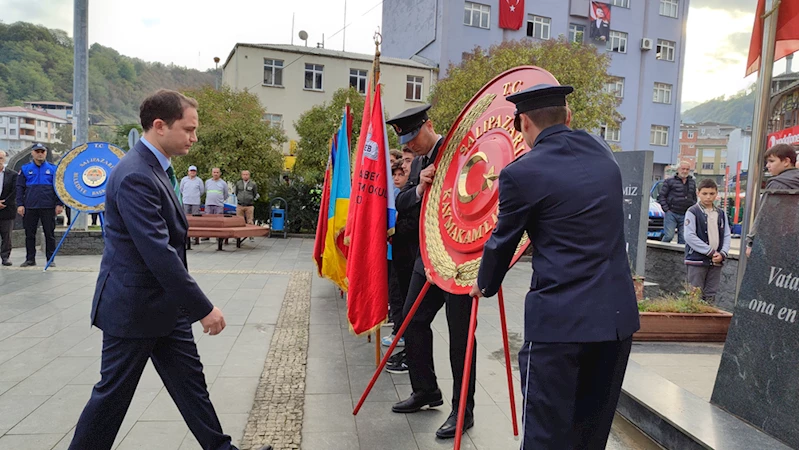 Cumhuriyet Meydanı'nda düzenlenen törende Atatürk Anıtı'na Kaymakam Salih Başara ve Belediye Başkanı Halil Akgül çelenk sundu, ardından saygı duruşunda bulunuldu, İstiklal Marşı okundu.