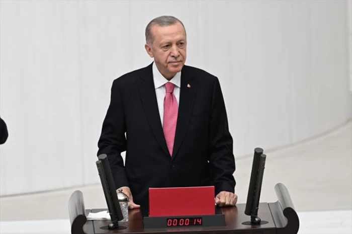 Kapıda resmi törenle karşılanan Erdoğan saat 15.00'te geçici TBMM Başkanı Devlet Bahçeli'nin takdimiyle salona girdi. Mazbatasını teslim alan Erdoğan daha sonra kürsüye çıkarak yemin metnini okudu. O anlar Cumhur İttifakı vekilleri tarafından dakikalarca alkışlandı.