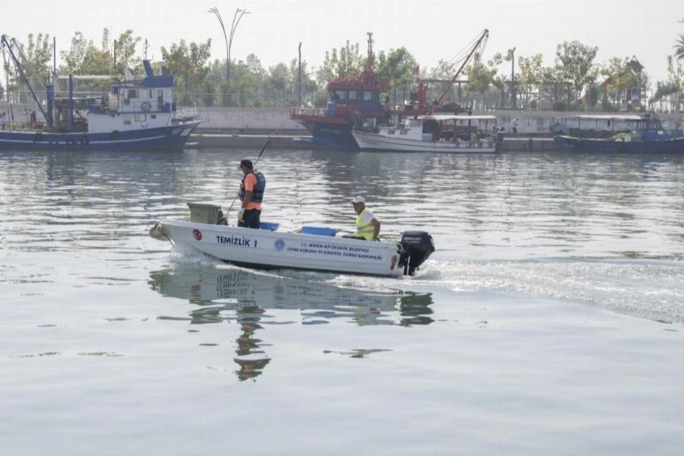 MERSİN (İGFA) - Mersin Büyükşehir Belediyesi Çevre Koruma ve Kontrol Dairesi’ne bağlı Denizcilik Hizmetleri ve Denetimi Şube Müdürlüğü ekipleri, denizdeki mikroplastikleri temizlemek için harekete geçti. Deniz süpürgesi ve fiber tekneyle daha büyük boyutlardaki katı atıkları uzun süredir temizleyen ekipler, mikro boyutlardaki atıkları temizlemek için uygun ekipmanlarla çalışmaya başladı. Gözenekli file sistemi oluşturan ekipler, her gün deniz yüzeyinden mikroplastik topluyor.