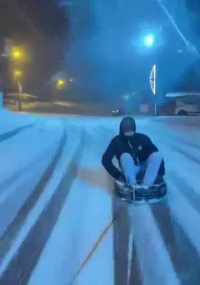 Diyarbakır’ın Dicle ilçesinde bir genç, aracın arkasına bağladığı lastik üzerinde kayarak kışın tadını çıkardı. Arkadaşlarının kartopu sürpriziyle daha da eğlenceli hale gelen anlar, renkli görüntüler oluşturdu.