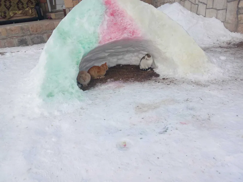İlçede duyarlı vatandaşlar tarafından kardan yapılan barınaklar, hayvanlara adeta sığınak oldu. Soğuktan korunmaları için özenle hazırlanan kar tünellerinin içinde tavuklar ve bir kedi güvenli şekilde barınırken, bu görüntüler yürekleri ısıttı. Barınakların içerisine saman serilerek hayvanların zeminden gelen soğuğa karşı korunması da sağlandı.