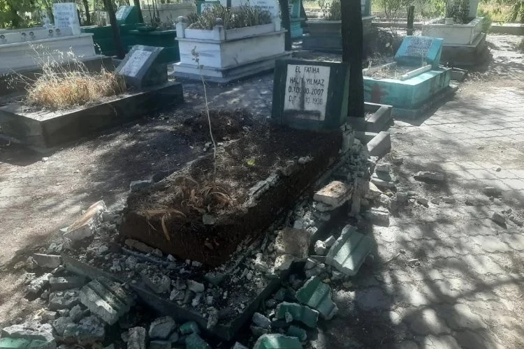 Şahıslar bununla da yetinmeyerek, kabirlerin etrafında bulunan demir korkuluklar ile kabirdeki betonları parçalayarak içerisindeki demirleri de alıp kayıplara karıştı.