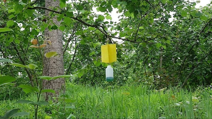 Gal arısının cezbederek kendisine çekip plakalara yapışmasını sağlayan yöntemi anlatan Yılmaz, “Tuzakta sarı renkli levha üzerinde yapışkan var. Böceğin bu renge geldiği gözlemlendi. Yine bir preparatla koku olarak takviye amaçlı iki şekilde kullanıyoruz. Hem renge hem de kokuyu alıp preparata yapışması ve böceğin imha edilmesini amaçlıyoruz. Böceği cezbetmek amaçlı kullandığımız şeker ve malt karışımlı ekstra koku yayan ve böceğin buna geldiği tespit edilen bir preparat var” diye konuştu.