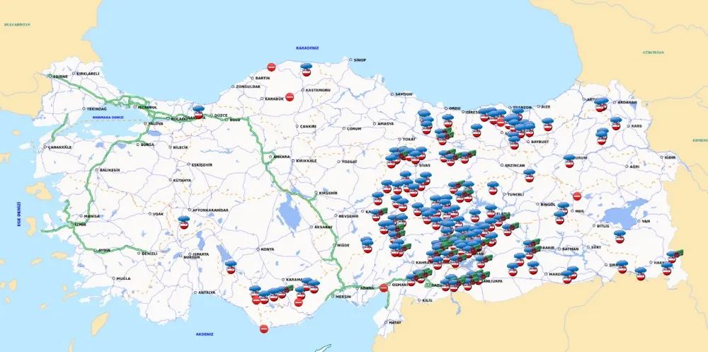 Onlarca karayolu araç ulaşımına kapandı. Araçlarıyla yollarda mahsur kalanlar yurtlarda ve tesislerde misafir edildi. Bölgede kuvvetli kar yağışının gün içerisinde etkisini kaybetmesi bekleniyor.