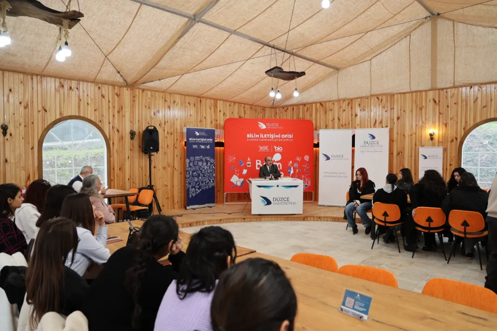 Düzce Üniversitesi, Yükseköğretim Kurulu Başkanı Prof. Dr. Erol Özvar’ın öncülüğünde başlatılan ve üniversitelerde üretilen akademik bilginin toplumun her kesimiyle buluşturmayı amaçlayan ‘Bilim Kafe’ buluşmalarına bir yenisini daha ekledi. Bilim İletişimi Ofisi ile Toplumsal Katkı Koordinatörlüğü tarafından 27 Aralık Mehmet Akif Ersoy’u Anma Günü’ne ithafen düzenlenen "Her Yönüyle Mehmet Akif" başlıklı bilim kafe Düzce Belediyesi Konuralp Antik Tiyatrosu Seyir Terası Çadırı’nda gerçekleştirildi.