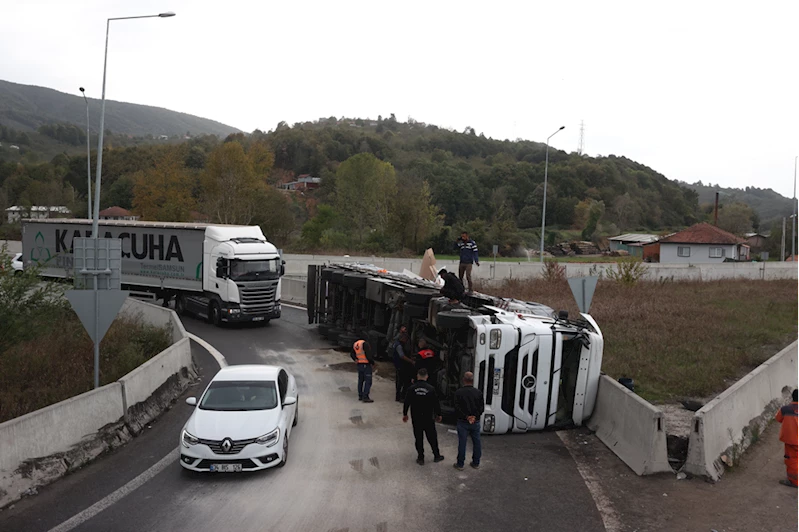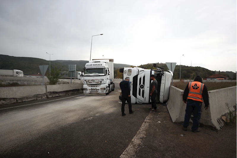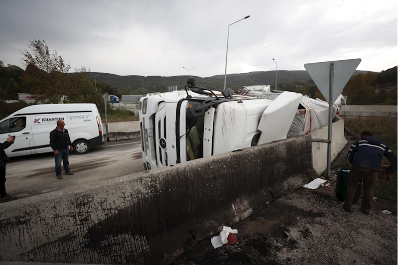 DÜZCE (AA) - Düzce'de virajı alamayan tırın devrilmesi sonucu sürücü yaralandı.