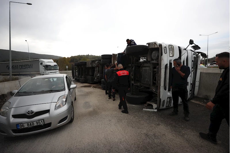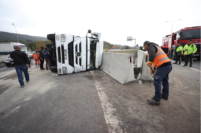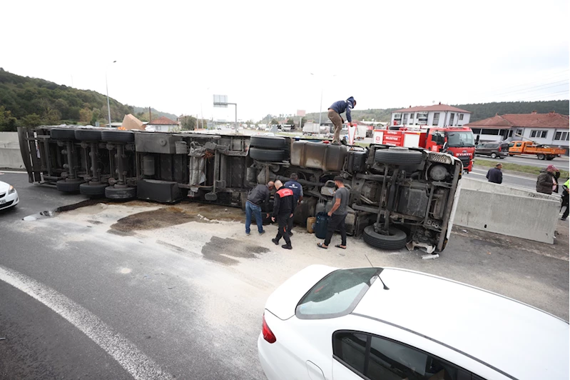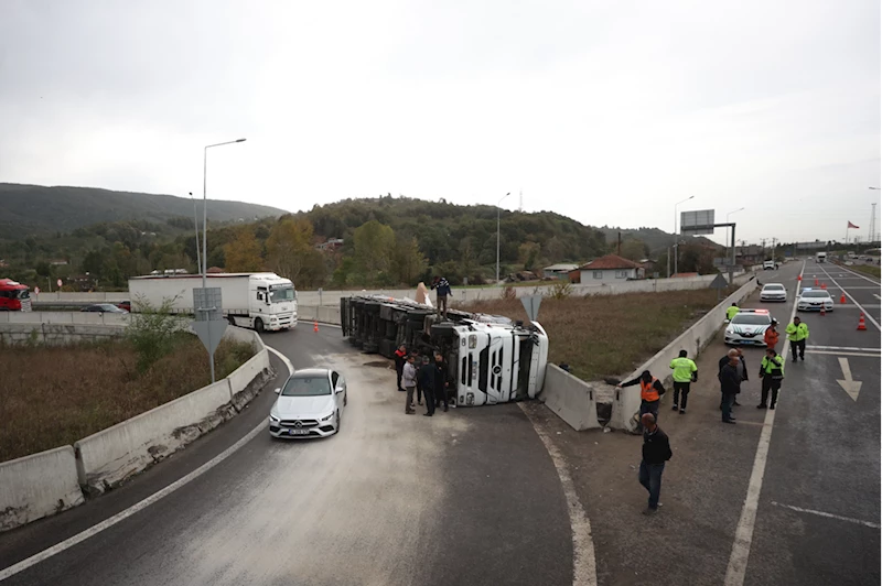 Kaza nedeniyle otoyol bağlantı yolunda bir süre aksayan ulaşım, tırın çekilmesinin ve temizlik çalışmasının ardından normale döndü.