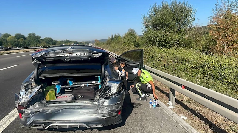 DÜZCE (AA) - Anadolu Otoyolu'nun Düzce kesiminde kaza yapan otomobildeki çocukları polis ekipleri teskin etti.