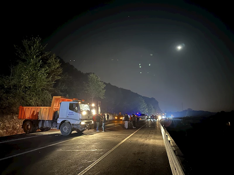 Telef olan atlar Gölyaka Belediyesi ekipleri tarafından bölgeden alınırken, yolda su tankeriyle temizlik çalışması yapıldı.