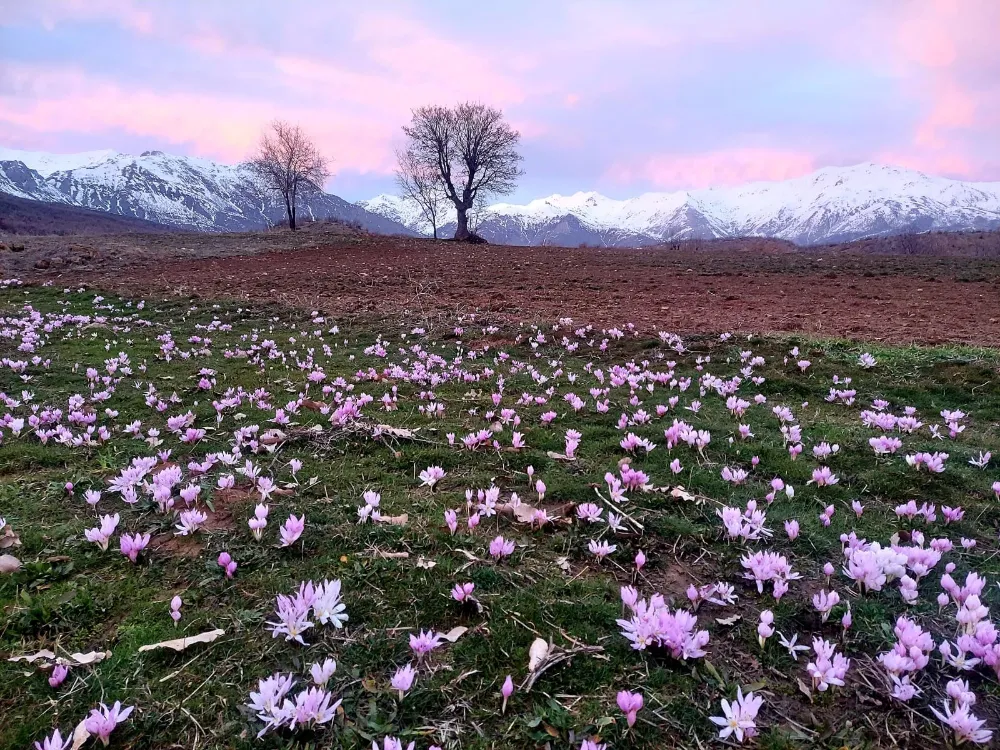 Arıcak’ta tarlaları süsleyen çiğdemler, erken baharın gelişini müjdeledi.