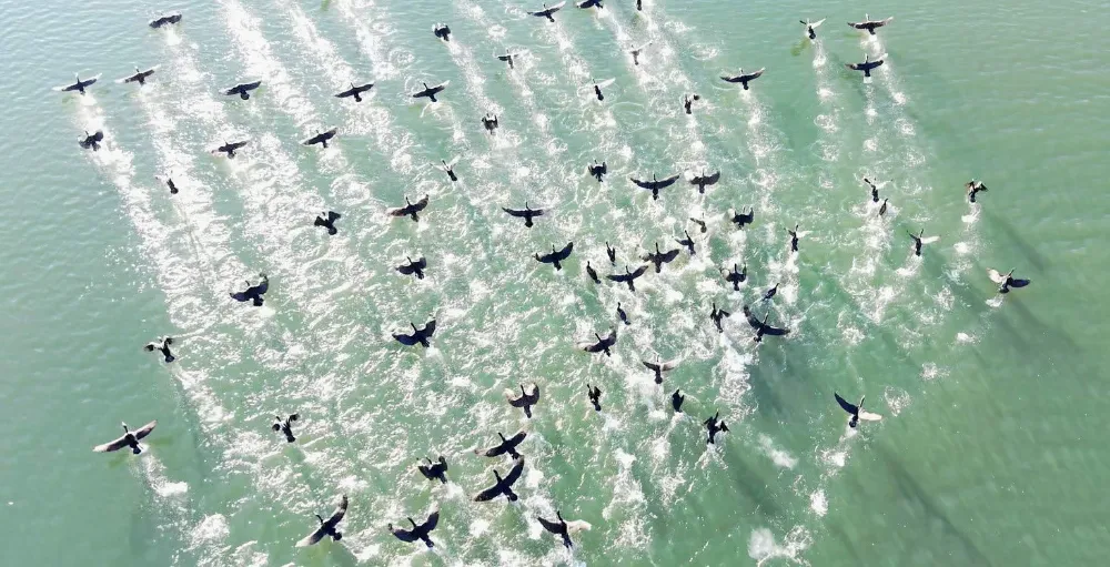 Cip Baraj Gölü’nde dron ile kaydedilen görüntülerde, kara bataklar su üzerinde ilerleyip kanat çırparak havalanırken, kışın yaban hayatına dair kartpostallık anlar ortaya çıktı.