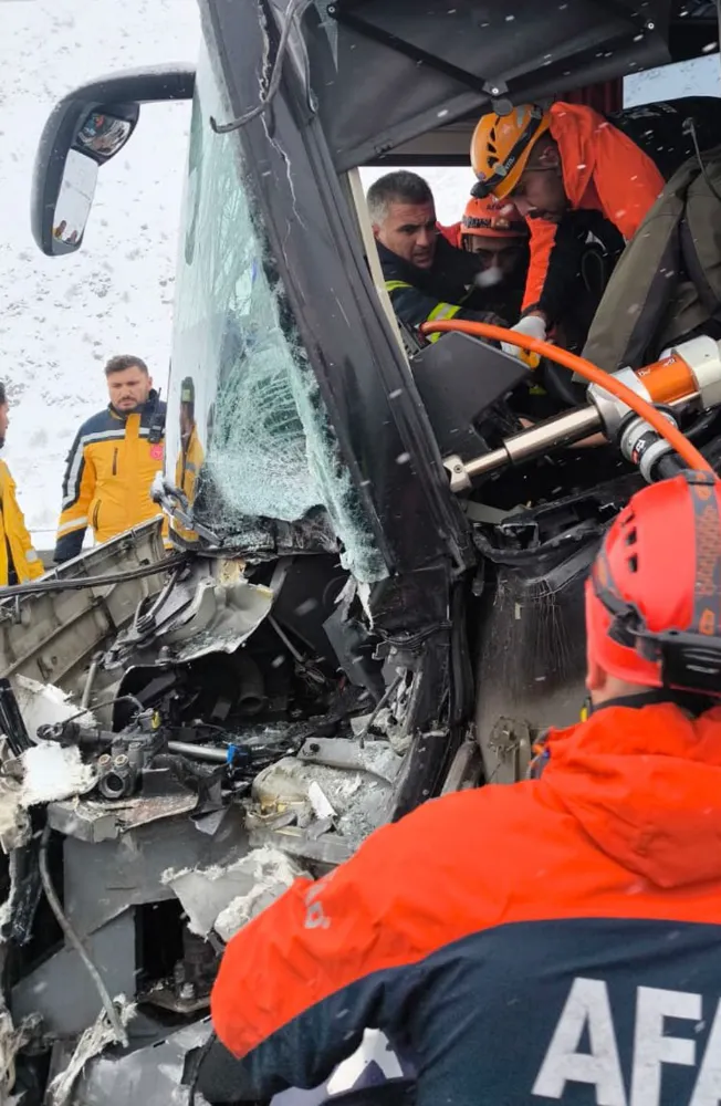 Kaza, Erzincan-Sivas kara yolu üzerindeki Sakaltutan Geçidi tüneller mevkisinde meydana geldi. Edinilen bilgiye göre, Marmaris’ten Van’a gitmekte olan L.A. yönetimindeki 16 ABN 493 plakalı yolcu otobüsü, kar yağışı ve olumsuz hava şartlarının etkili olduğu bölgede, önünde seyreden İran plakalı tıra arkadan çarptı.