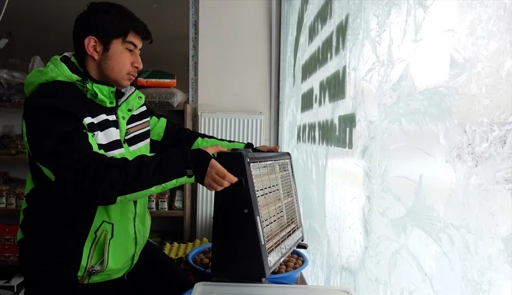 Bazı esnaflar camların buzunu elektrikli ısıtıcı kullanarak çözmeye çalıştı.