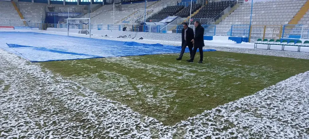 Erzurum’da etkili olan sert kış koşullarına rağmen stadyum zemininde yürütülen koruma ve bakım çalışmaları aralıksız devam ediyor. Erzurumspor ile Çaykur Rizespor arasında oynanacak Ziraat Türkiye Kupası karşılaşması öncesinde saha, özel önlemlerle maç gününe hazır hale getiriliyor.