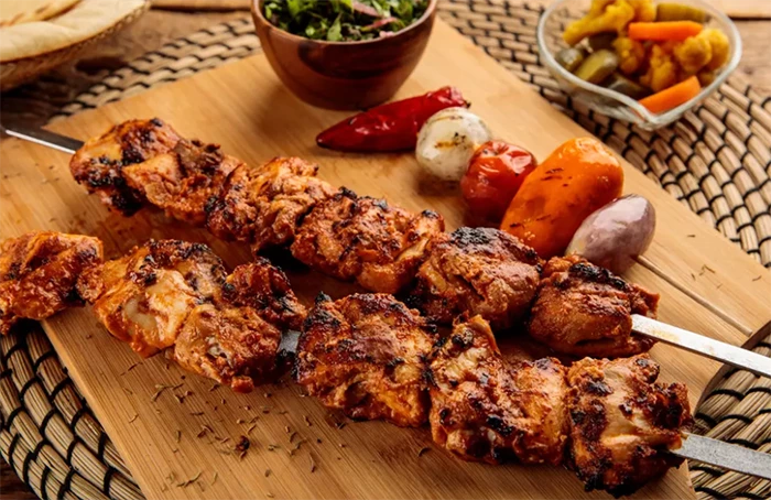 Tavukları çöp şişlere çok sık olmayacak şekilde dizip önce una ardından sosa buluyoruz.