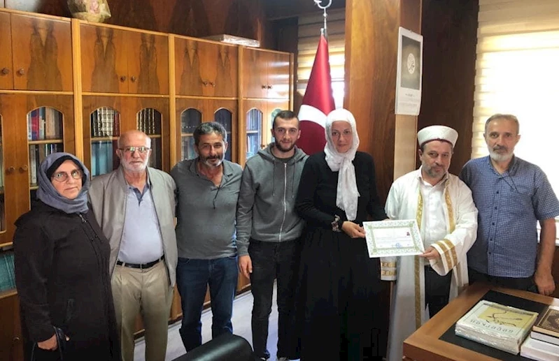 Çobanoğlu, Hatice'yi tebrik ederek ihtida belgesi ile Türkçe ve İngilizce Kur'an-ı Kerim hediye etti.