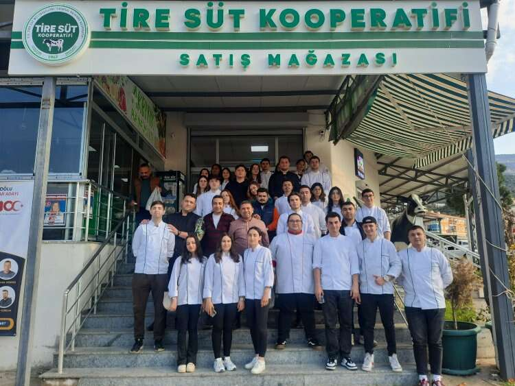 Dokuz Eylül Üniversitesi Gastronomi Bölümü son sınıf öğrencileri, İzmir Aşçılar Derneği Başkanı Doç. Dr. Turgay Bucak önderliğinde, gastronomi alanındaki eğitimlerine pratik bir boyut kazandırmak için Tire Süt Kooperatifi'ne öğretici bir ziyaret gerçekleştirdiler. Bu ziyaret, öğrencilerin süt ürünleri ve et ürünlerinin üretiminin yanı sıra yerel tarım ve gıda kültürü hakkında derinlemesine bilgi edinmelerine olanak tanıdı. Öğrenciler, Tire'nin verimli topraklarında yetişen çeşitli yeşillikleri ve doğal ürünleri yerinde görme fırsatı buldular.