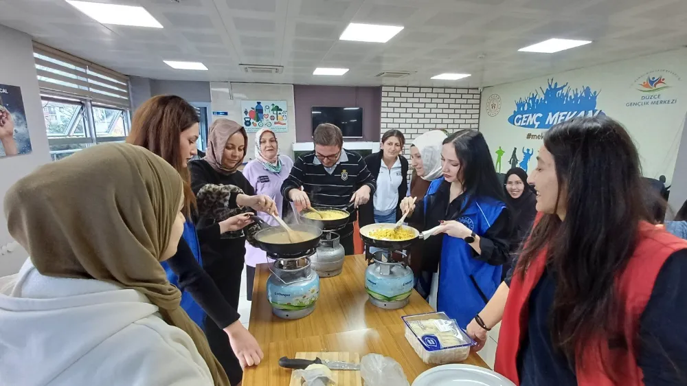 Düzce Gençlik ve Spor İl Müdürlüğü tarafından düzenlenen Yöresel Lezzetler Atölyesi etkinliğinde gönüllü gençler, Karadeniz mutfağının sevilen lezzeti kuymakı birlikte hazırlayarak hem öğrendi hem de keyifli anlar yaşadı.