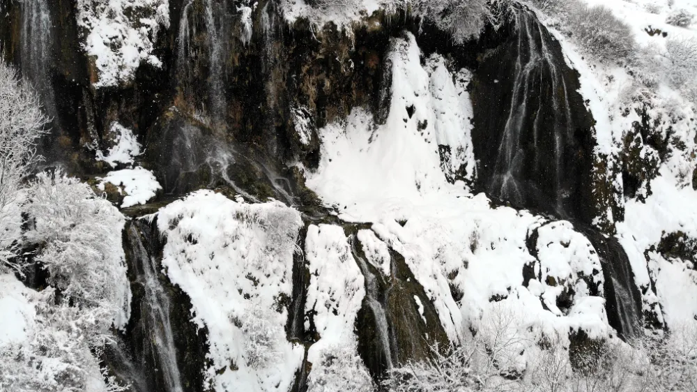 Kent merkezine 35 kilometre uzaklıktaki Kalecik köyünde bulunan ve 9 kaynak suyunun birleşmesiyle oluşan Girlevik Şelalesi, yaklaşık 40 metreden dökülen sularıyla her mevsim ayrı bir güzellik sunuyor. Kar yağışıyla birlikte kısmen donan şelalede buz sarkıtları oluşurken, beyaz örtüyle bütünleşen manzara görsel şölen oluşturdu.