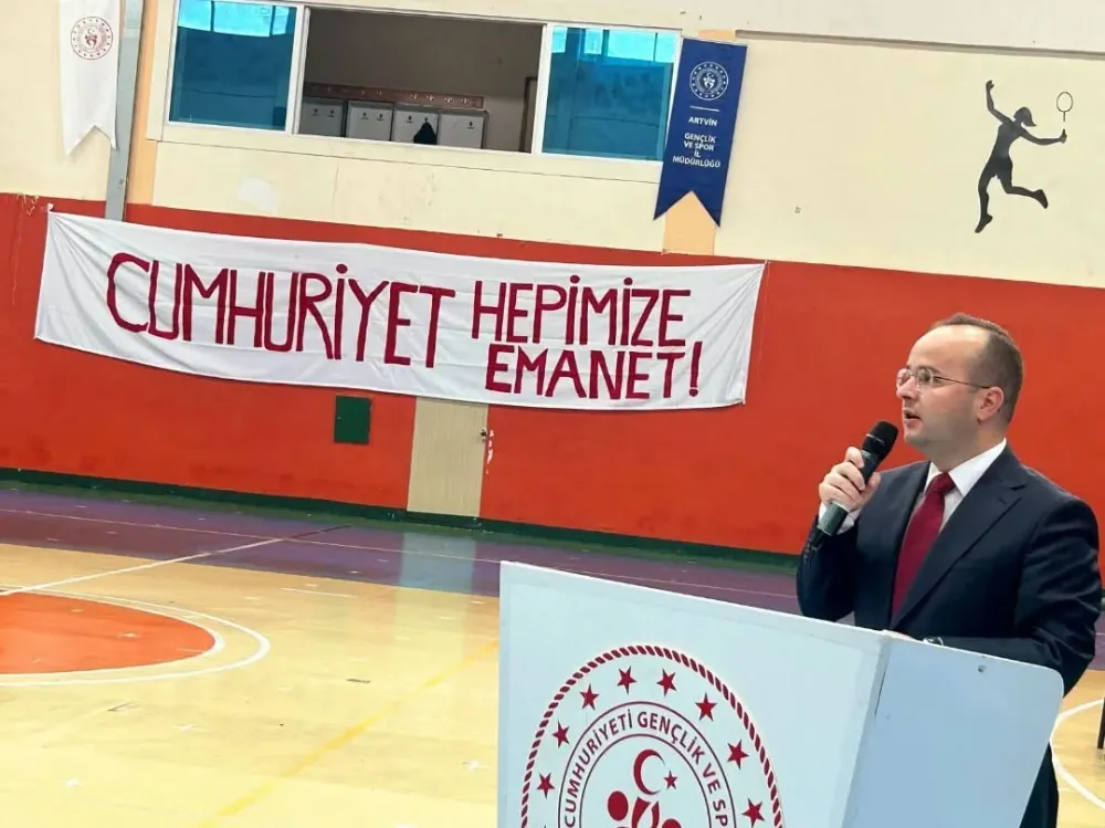 Artvin’in Hopa ilçesinde, 29 Ekim Cumhuriyet Bayramı’nın 102. yıl dönümü büyük bir coşkuyla kutlandı. Hopa Gençlik ve Spor İlçe Müdürlüğü tarafından düzenlenen kutlama programı, Gençlik ve Spor Salonu’nda gerçekleştirildi.