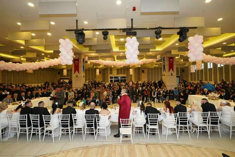 Nikah töreninde konuşan Üsküdar Belediye Başkanı Hilmi Türkmen, "bu güzel hafta sonunda çok anlamlı bir 17 ayrı çiftçimizin nikah merasimine hoş geldiniz. Bu güzel hemşehrimiz, bu güzel gençlerimiz belediyemize müracaat ettiler. Birbirleriyle evlenme istediklerini beyan ettiler. Şimdi biz de Üsküdar Belediyesi olarak toplu bir nikah merasiminde bu mutluluğu hep paylaşalım diye güzel bir organizasyonla ev sahibi yapıyoruz. Huzurlarınızda evlenecek olan çiftlerimizin bugün nikahını kıyacağımızın tüm gençlerimizi tebrik ediyorum, mutluluklar diliyorum" dedi.