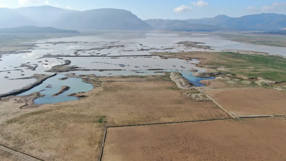 Öte yandan, yaşanan şiddetli kuraklık nedeniyle suların çekildiği ve otlak alanına dönen baraj havzasındaki değişim dron ile havadan görüntülendi. Daha önce atlar ve ineklerin otladığı kurak topraklarda, son yağışlarla birlikte derelerden gelen suların baraj yatağına doğru aktığı görüldü.