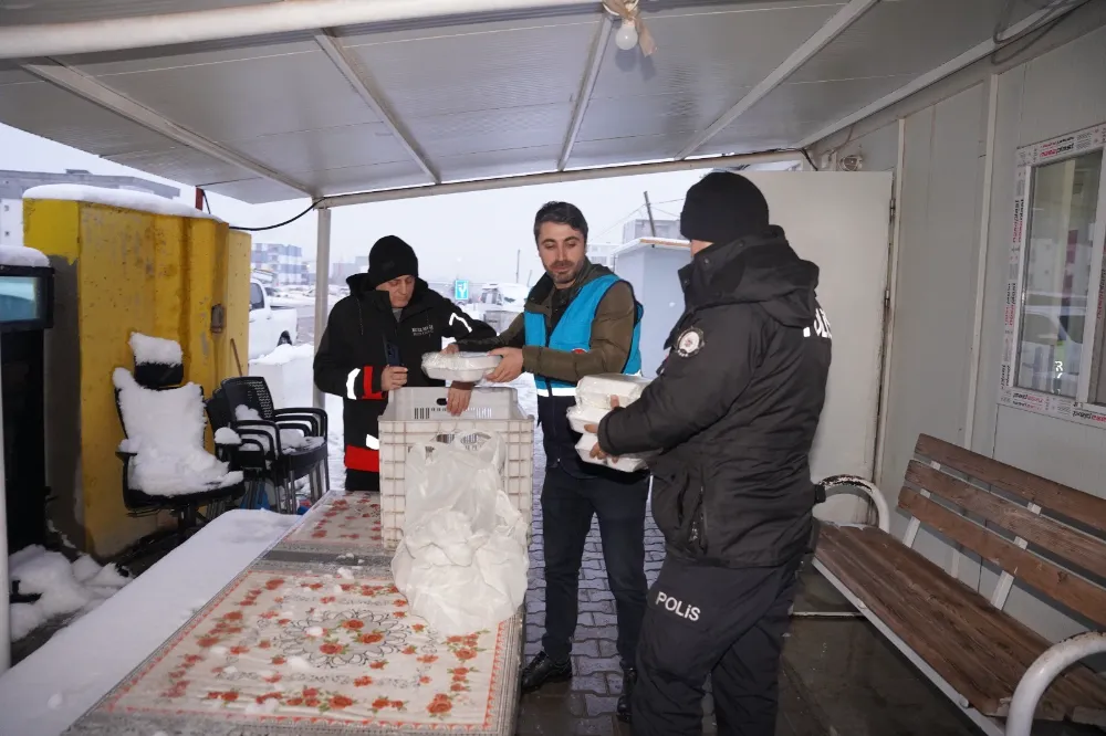 Zorlu hava şartları nedeniyle evlerinden çıkamayan vatandaşlara ekmek ve sıcak yemek ulaştırılırken, yollarda mahsur kalan sürücü ve yolcular için de sıcak çorba ve konaklama desteği sağlanıyor.