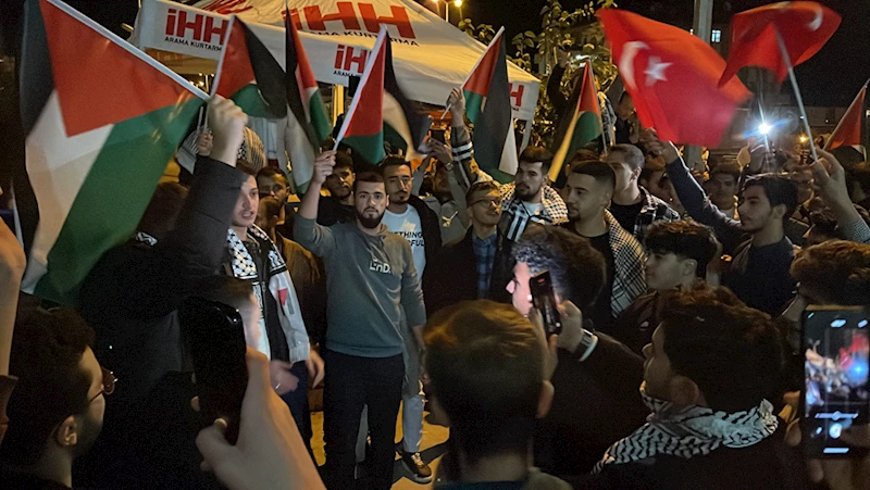Grup üyeleri burada, İsrail aleyhine slogan attı.