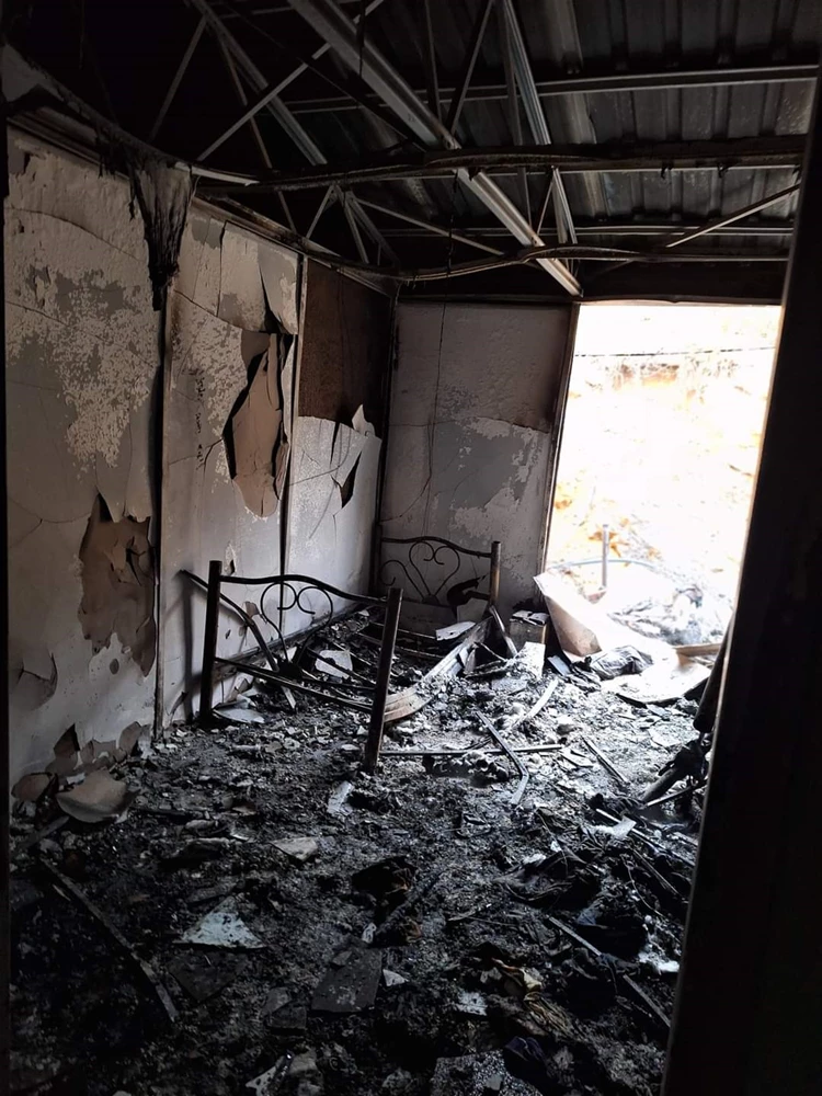 Kutluören köyü sınırlarındaki mermer ocağında işçilerin kaldığı konteynerde bilinmeyen nedenle yangın çıktı.