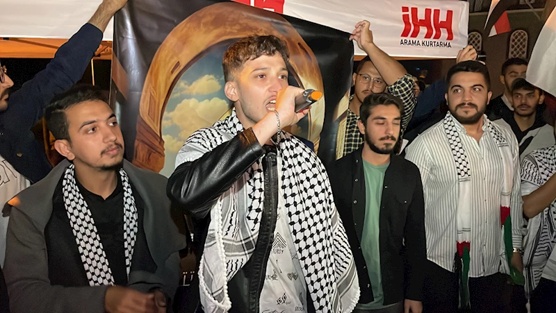 Türkiye ve Filistin bayrakları taşıyan gruptakiler, abluka altındaki Gazze Şeridi'nden İsrail'e saldırı başlatan Hamas ile Filistin direnişini destekleyen sloganlar attı, pankartlar açtı.