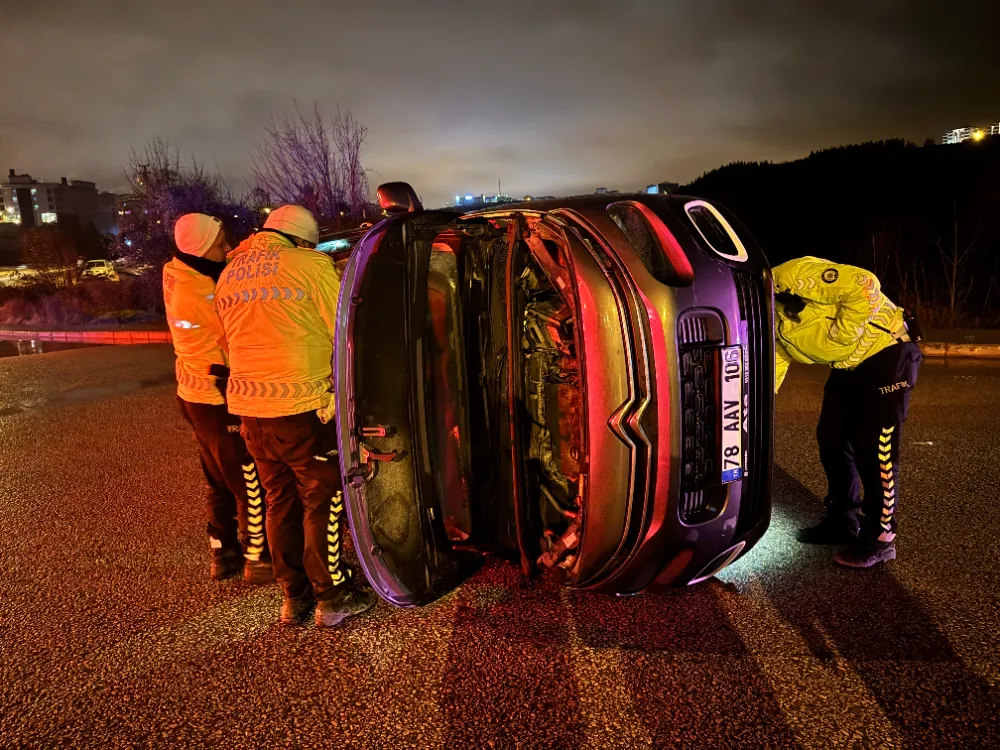 Kaza 100. Yıl Mahallesi 1010 Nolu Sokak’ta meydana geldi. Kimliği belirlenemeyen sürücü idaresindeki 78 AAV 106 plakalı hafif ticari araç Safranbolu istikametine seyir halindeyken kaldırıma çarpıp yaklaşık 50 metre ilerledikten sonra devrildi. Kazada araçta bulunan Ezgi Ç. yaralandı. İhbar üzerine olay yerine polis, itfaiye ve 112 Acil Servis ekipleri sevk edildi. Araçta sıkışan yaralı diğer sürücülerin yardımıyla çıkarılırken sağlık ekiplerinin ilk müdahalesinin ardından hastaneye kaldırıldı.