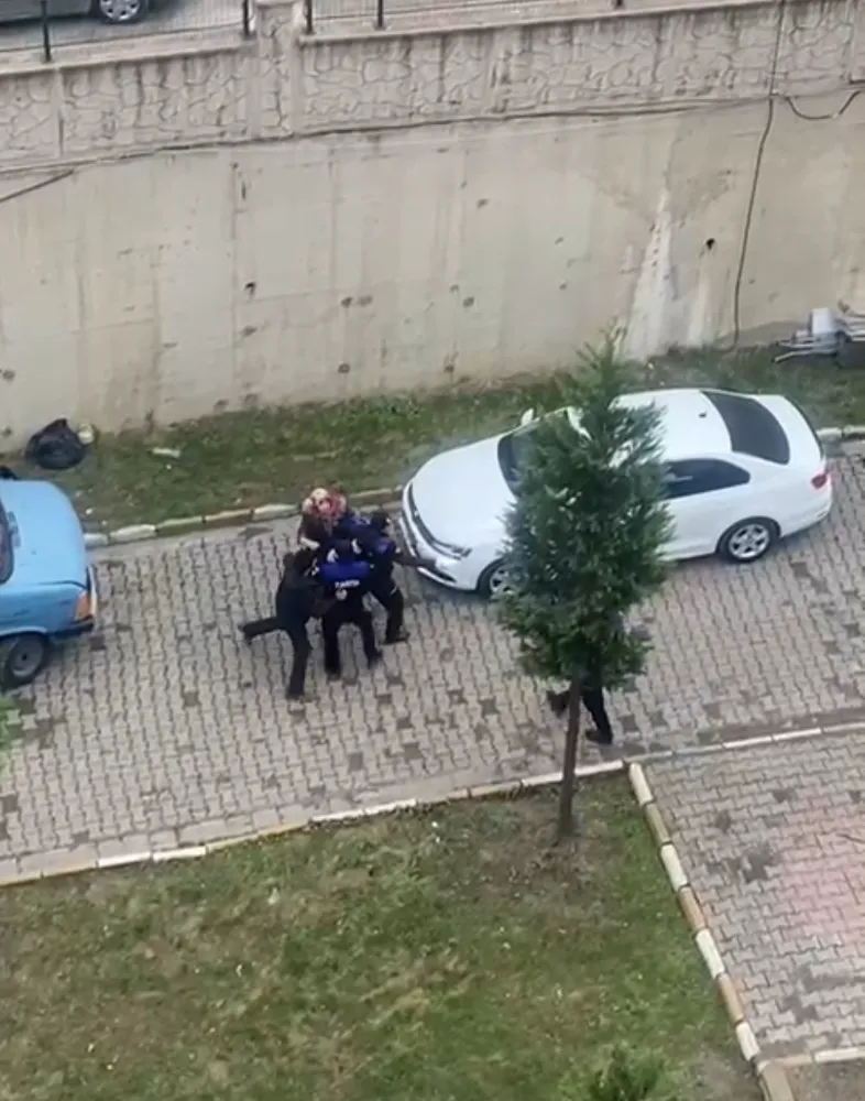 Cep telefonu kamerasına yansıyan görüntülerde, zabıta ekiplerinin sakin ve anlayışlı bir tutum sergilemesine rağmen N.Ş'nin kaldırım taşıyla ve fiziki müdahalede bulunarak saldırdığı anlar yer aldı.