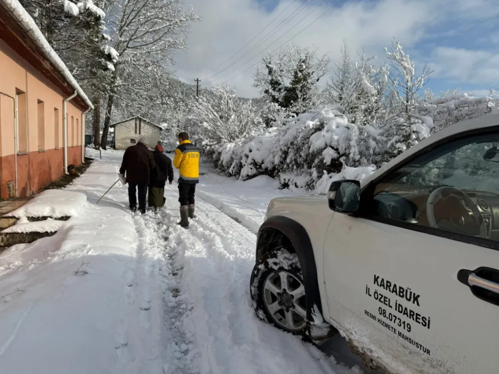 Karabük İl Özel İdaresi ekipleri, kar yağışının ardından kapanan köy yollarını yeniden ulaşıma açmak için çalışmalarını aralıksız sürdürüyor.