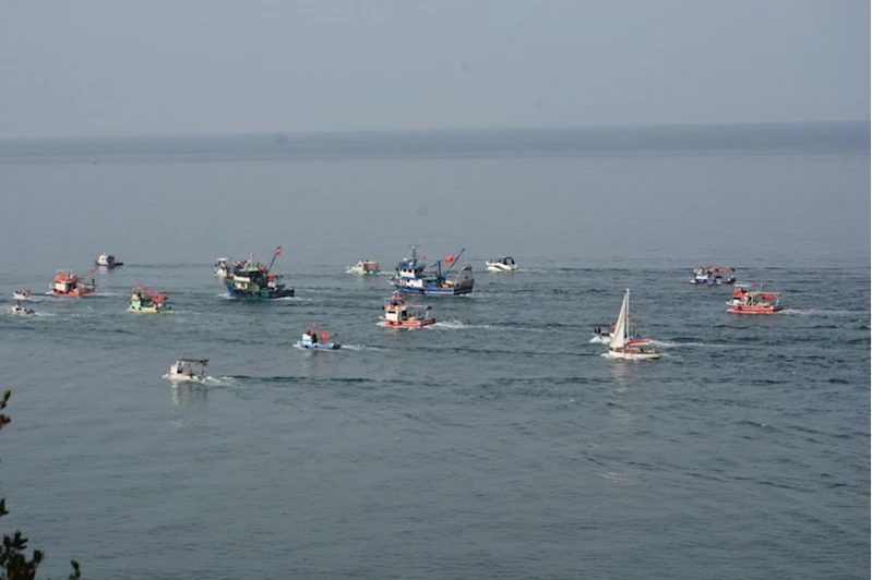 Akçakoca Sahil Güvenlik Komutanlığı ekipleri de 38 kilometrelik sahil şeridi boyunca deniz turu yapan teknelere sirenleriyle eşlik etti.