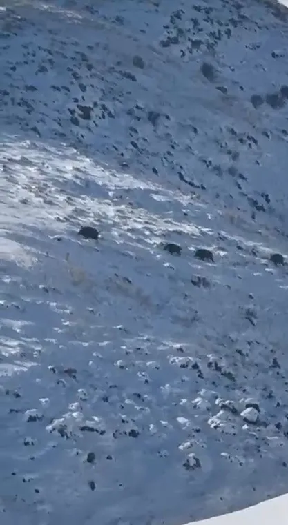 Kars’ın Akyaka ilçesine bağlı Küçükdurduran ve Sulakbahçe köylerinde sabah erken saatlerde ortaya çıkan domuz sürülerinin, koşarak karlı arazide ilerlediği görüldü. Domuz sürüleri Tokay Kurtbaş ve Mahsuncan Işık, tarafından cep telefonu kameralarıyla kaydedildi. Görüntülerde, kalabalık domuz sürüsünün karla arazilerde ve dağlık bölgede hızla kaçtığı anlar yer aldı.