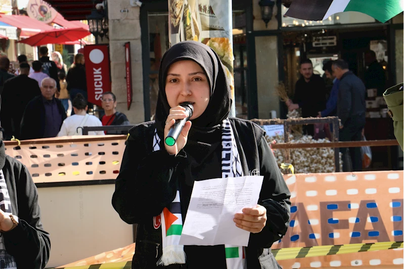 İnisiyatif sözcüsü Sinem Altıntaş, burada yaptığı konuşmada, İsrail'in saldırılarına "dur" demek amacıyla bir araya geldiklerini söyledi.