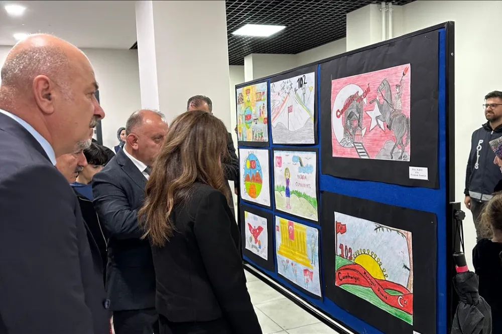 Törenin sonunda dereceye giren öğrencilere ödülleri takdim edilirken, “102. Yıl Resim Sergisi” de ziyaret edildi.