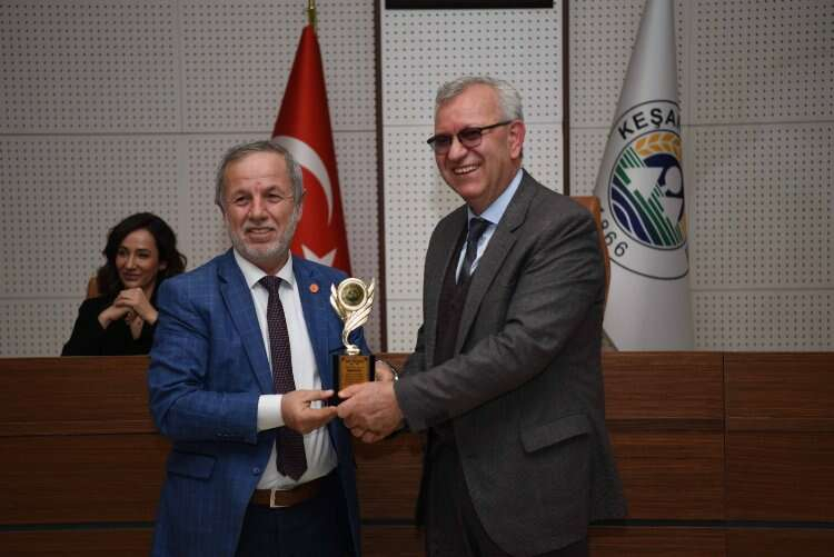 Toplantı sonunda parti grup sözcüleri tarafından Keşan Belediye Başkanı Mustafa Helvacıoğlu’na Hizmet Onur Plaketi verildi.