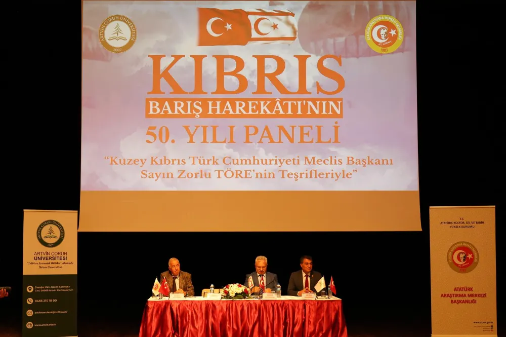 Artvin’de, Kıbrıs Barış Harekâtı’nın 50. yılı vesilesiyle anlamlı bir panel düzenlendi. Artvin Çoruh Üniversitesi’nde gerçekleştirilen panele, Kuzey Kıbrıs Türk Cumhuriyeti (KKTC) Meclis Başkanı Zorlu Töre ve Artvin Valisi Cengiz Ünsal başta olmak üzere birçok önemli isim katıldı. Panel, Atatürk Araştırma Merkezi Başkanlığı (ATAM) ve Artvin Çoruh Üniversitesi iş birliğiyle gerçekleştirildi.