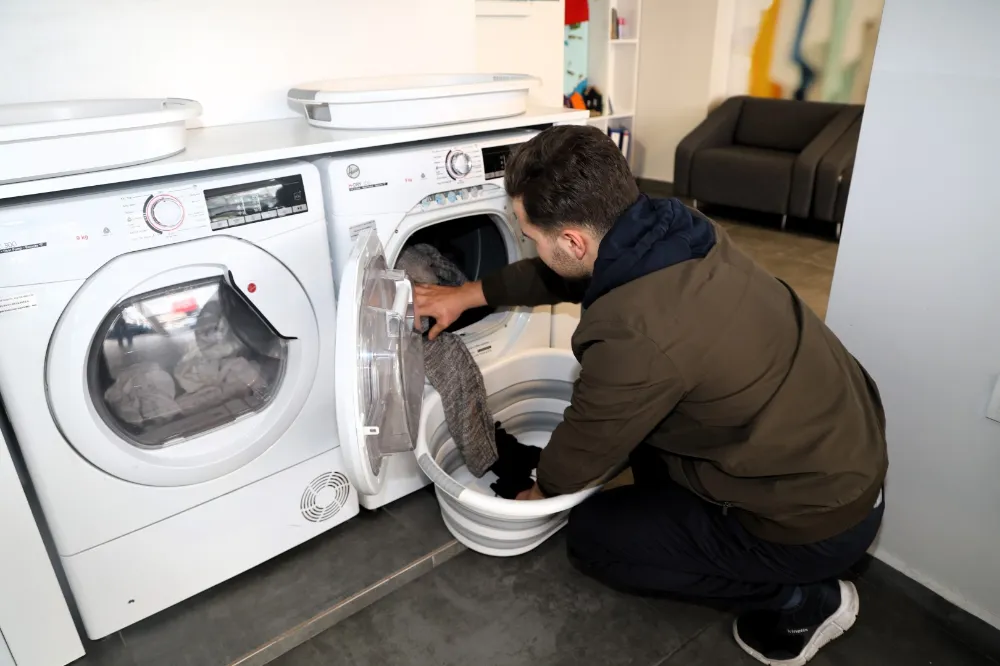Öğrenci kimlik kartlarıyla kayıt yaptıran üniversiteliler, merkezde bulunan 10 çamaşır ve 5 kurutma makinesini ücretsiz kullanabiliyor. Ütü imkanının da sağlandığı tesiste, öğrenciler işlemlerin tamamlanmasını beklerken kitap okuma alanında vakit geçirebiliyor.