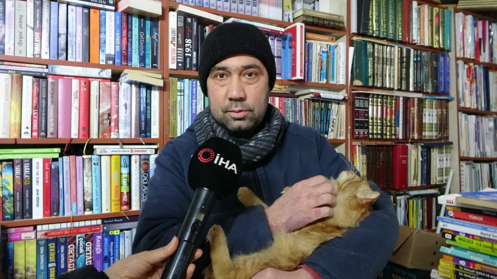 6 Şubat depremlerinin ardından iş yerinin yeniden inşa edilmesi nedeniyle konteynere taşınan sahaf Cihan Dede, hem ekmeğini kazanıyor hem de onlarca sokak kedisine barınma imkânı sağlıyor. Yerinde dönüşüm projesi kapsamında dükkanının yıkıldığını belirten Cihan Dede, konteyner iş yerinde hayvanlara bakabilmek için özel bir alan oluşturduğunu söyledi. Dede, "Dükkanımız varken kedilere üst katta bakıyorduk. Şimdi konteynerdeyiz. Hayvanlara bakabilmek için konteynerin yarısını bölüp ufak bir oda yaptık. Su kaplarını, mamasını her şeyini koyduk. Hem ekmeğimi kazanıyorum hem de 22-23 hayvana bakıyorum" dedi.