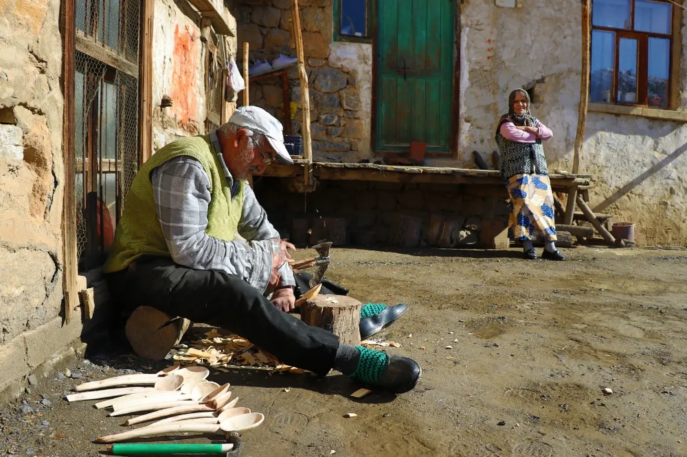 Hadim’in dağlık yapısıyla bilinen Gezlevi Mahallesi’nde yaşayan İlyas Vurgun, çocukluk yıllarında babasının yanında başladığı tahta kaşık yapımını bugün de aynı özenle devam ettiriyor. Henüz küçük yaşlarda mesleği öğrenen Vurgun, zamanla bu zanaatı bir geçim kaynağı ve yaşam biçimi haline getirdi. Tahta kaşık yapımında kullanılacak ağacı bizzat kendisinin seçtiğini anlatan Vurgun, "Ben kendim dağdan beğendiğim, kaşık olabilecek ağaçları bulup getiriyorum. Ak şimşir, taş şimşir ve boz armut (ahlat) ağaçlarından yapıyorum. Başka tür ağaçlardan da yapanlar varmış ama onu ben anlamam" dedi.