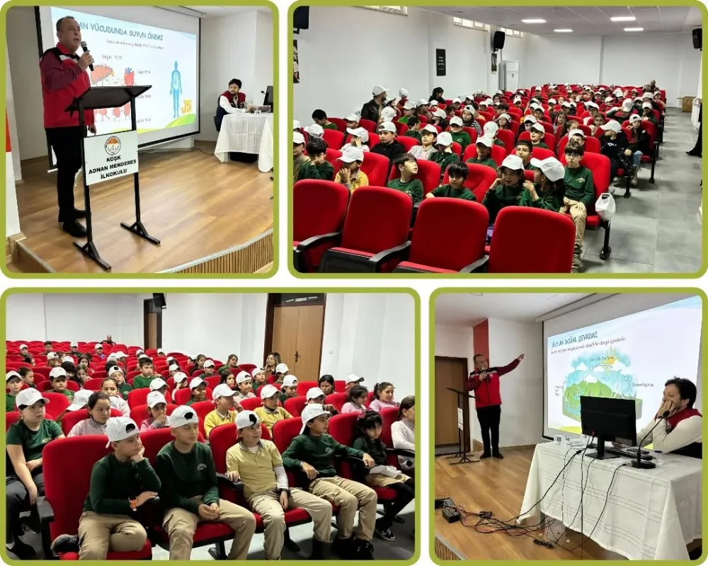 Aydın'ın Köşk ilçesinde ilkokul öğrencilerine verilen eğitimde, suyun verimli kullanımı ve kaynakların korunması eğlenceli bir dille anlatıldı.