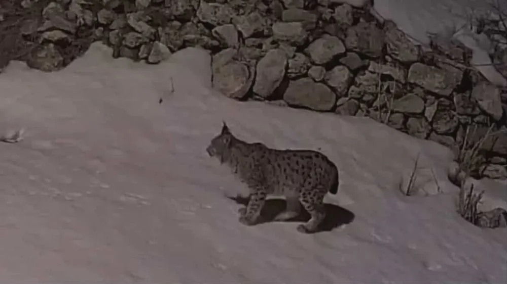 Yüksek kesimlerde etkisini artıran yoğun kar yağışı yaban hayatını da olumsuz etkiliyor. Gece saatlerinde yiyecek aramaya Bürüncek köyüne inen vaşak, yerleşim alanında bir süre dolaştı.