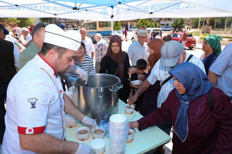 AMASYA (AA) - Amasya’nın Merzifon ilçesinde muharrem ayı dolayısıyla vatandaşlara aşure dağıtıldı.