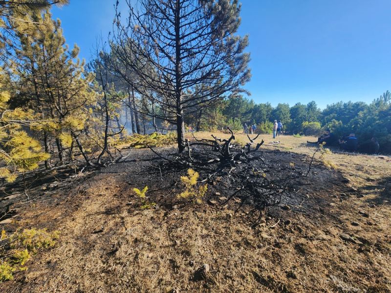 Köylülerin yardımıyla büyümeden söndürülen yangında, 2 dönüm ormanlık alan yandı.