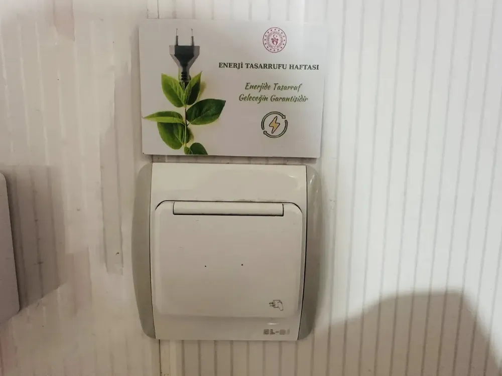 Minik katılımcılar, enerji verimliliğine dikkat çekmek amacıyla hazırladıkları etiketleri merkez binasının çeşitli noktalarına yerleştirerek günlük yaşamda enerji tasarrufu bilincini artırmayı hedefledi.