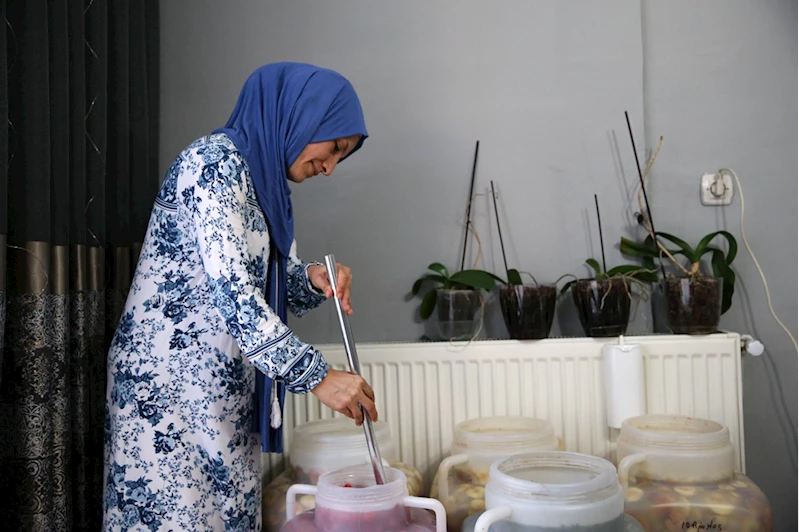 Kalıcı konutlar bölgesinde yaşayan evli ve 2 çocuk annesi 42 yaşındaki Sezer, yeni tip koronavirüs (Kovid-19) salgını sürecinde yemeklerinde kullanmak için aradığı organik elma sirkesini bulamayınca evinde yapmaya karar verdi.
